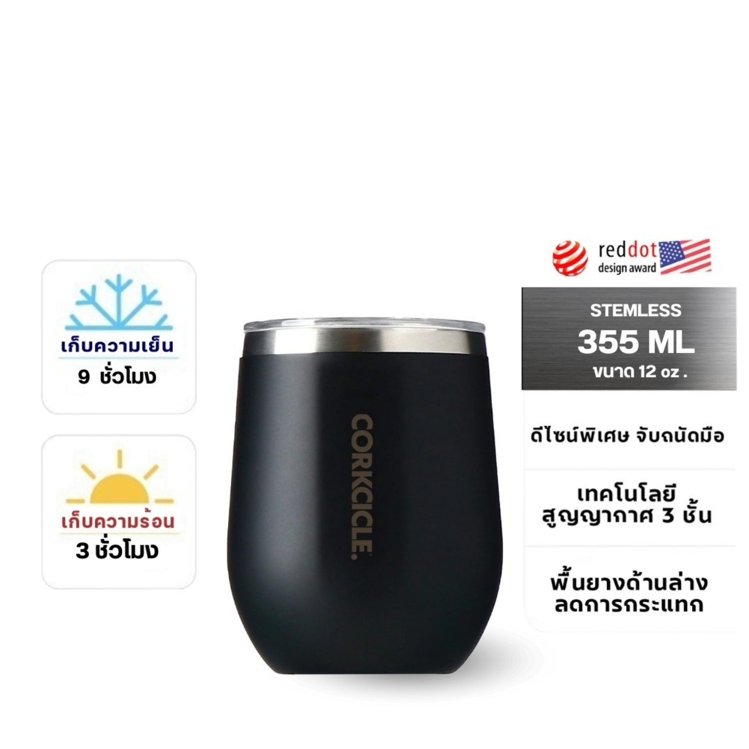 CORKCICLE : STEMLESS 12OZ - MATTE BLACK