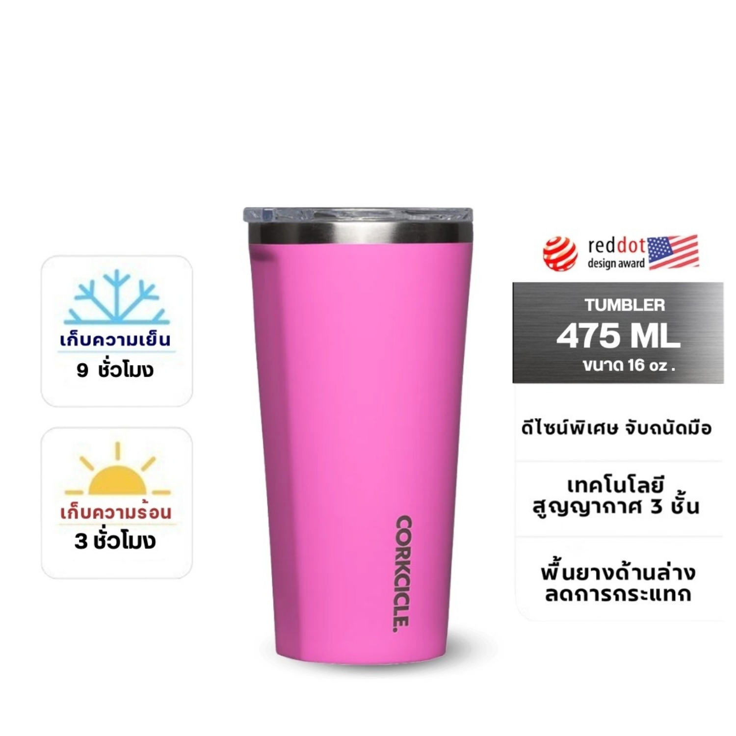 CORKCICLE : TUMBLER MIAMI PINK 16OZ